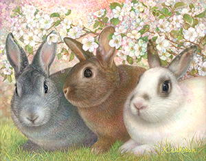 『 蒲の穂綿に縁起うさぎ 』 ●