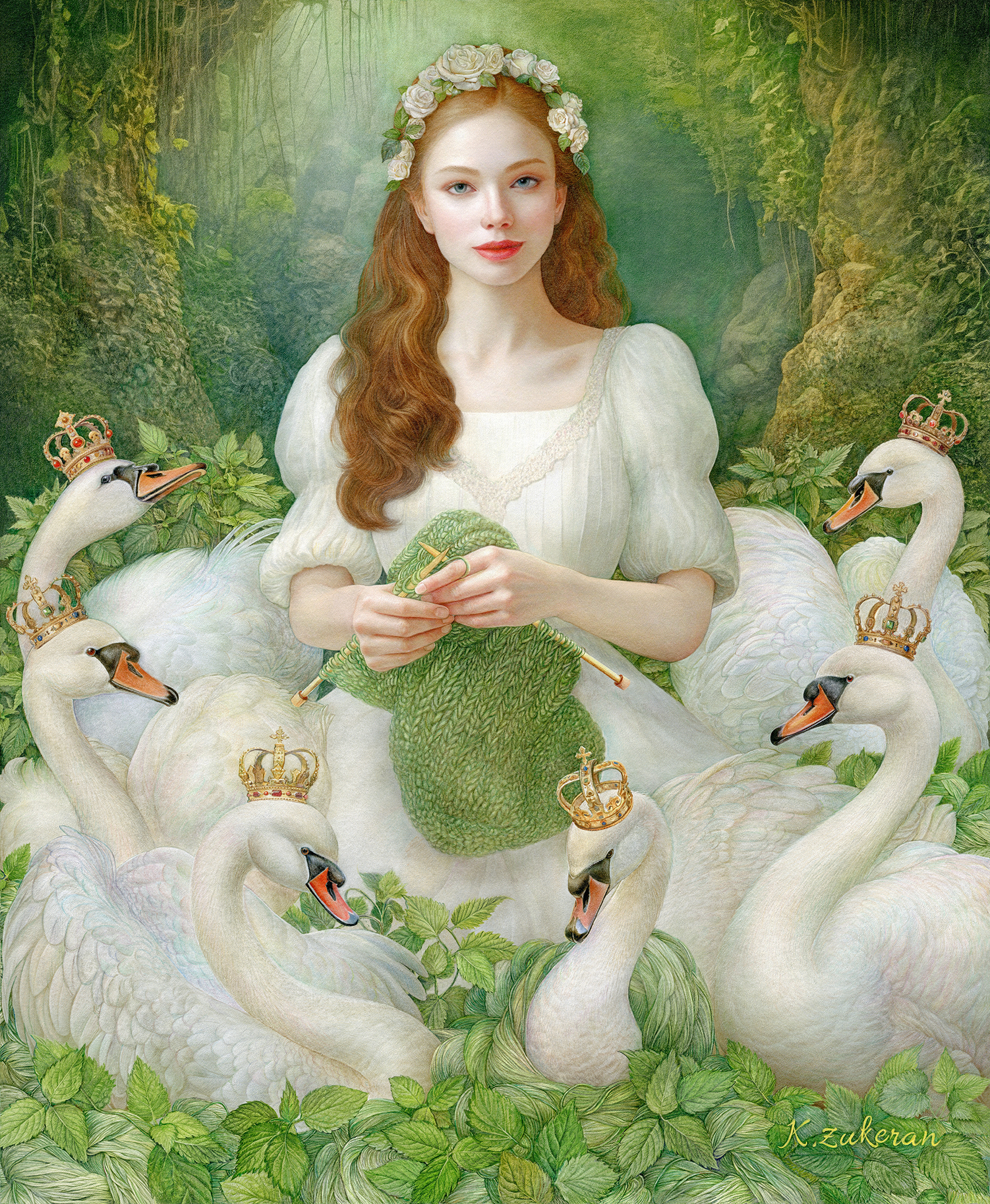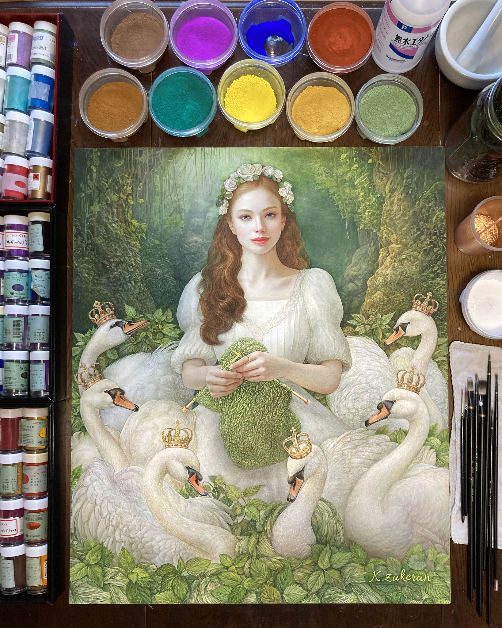 『 Wild Swans 』 フレスコ画 / 画寸:60.6×50.0cm (F12号) ・ 額寸:76.5×66.0cm
