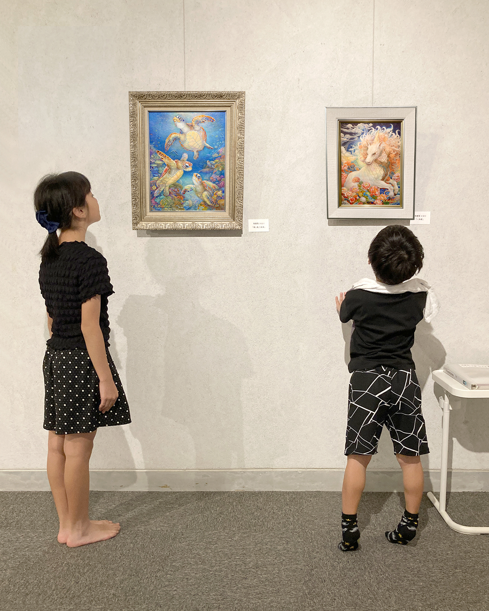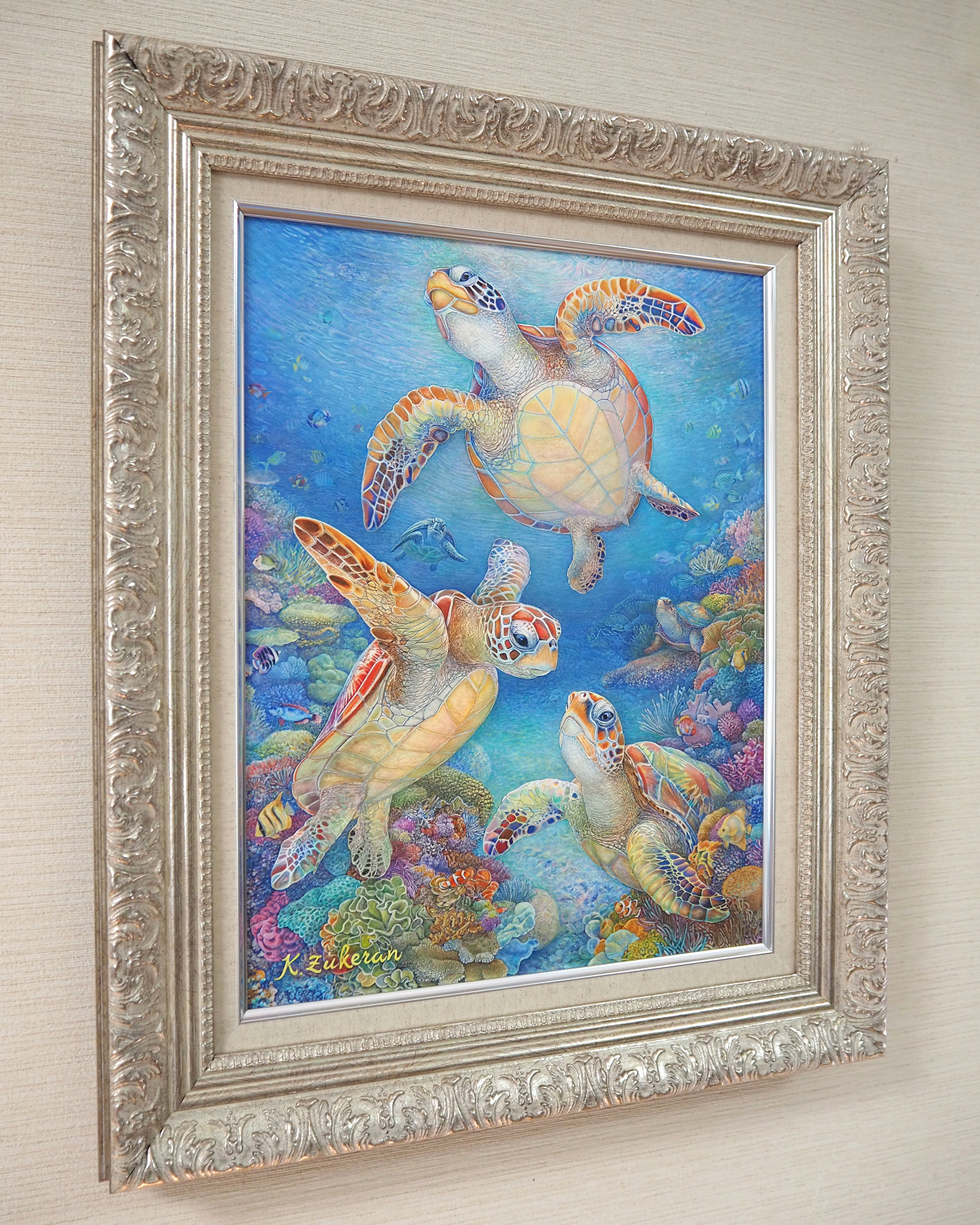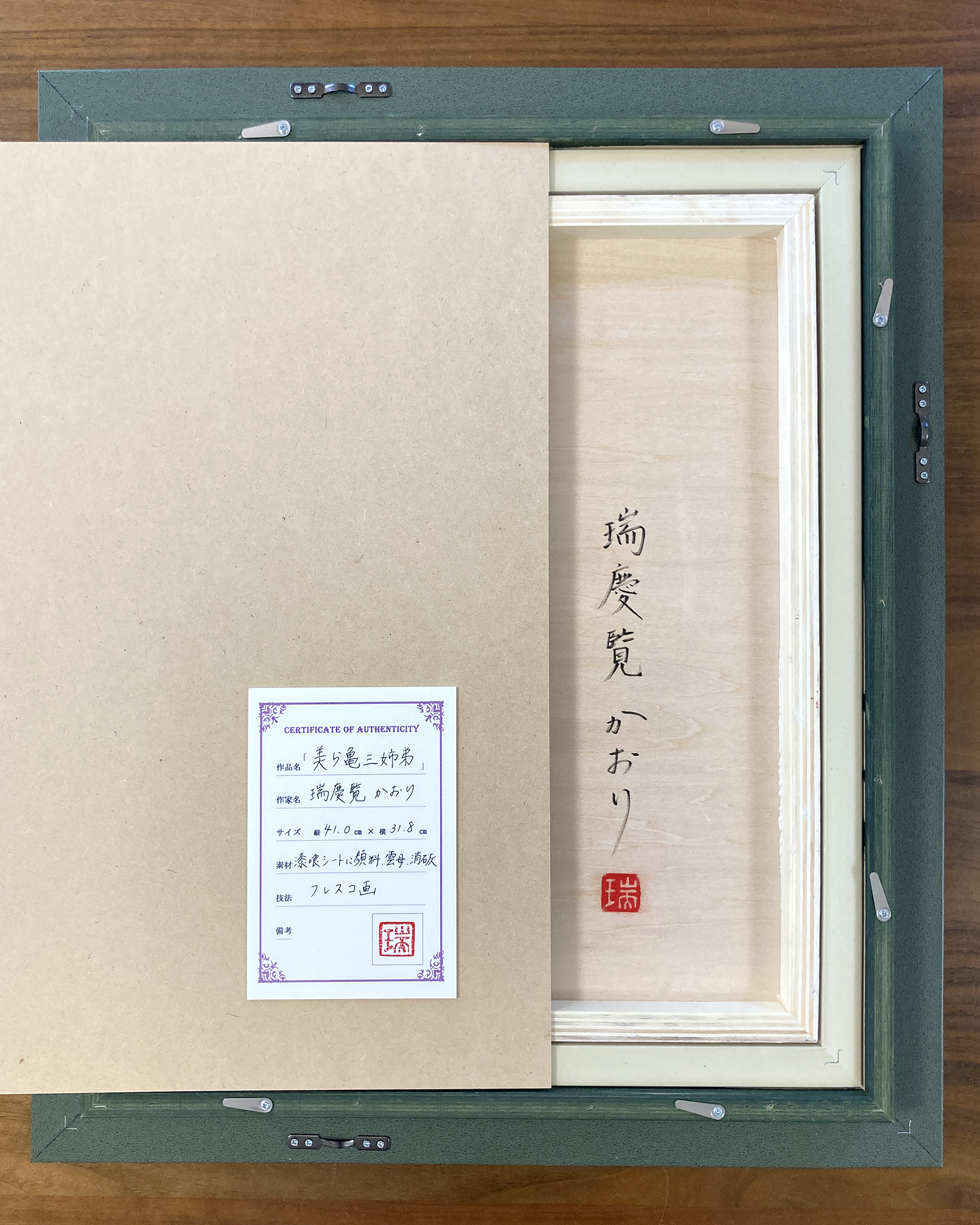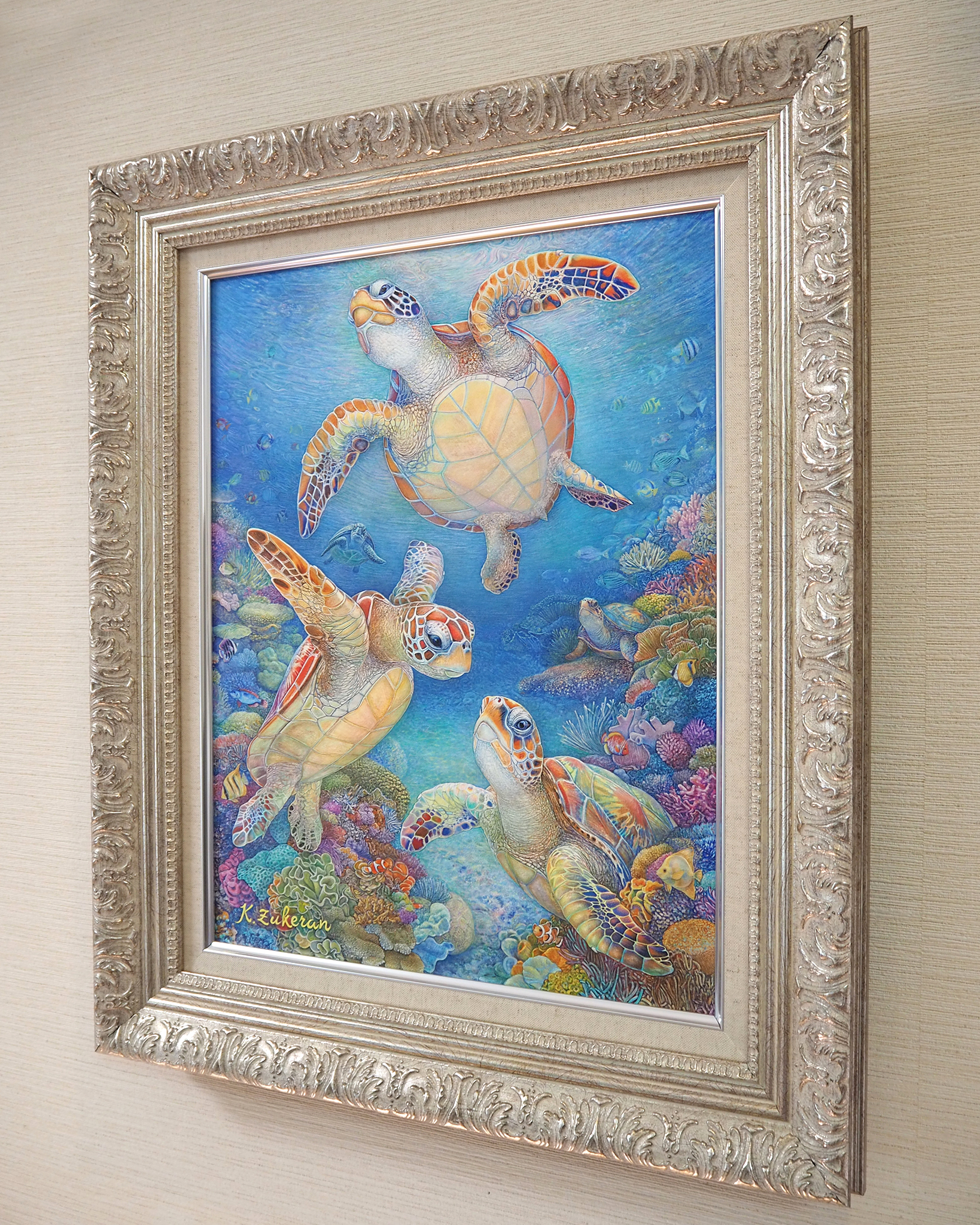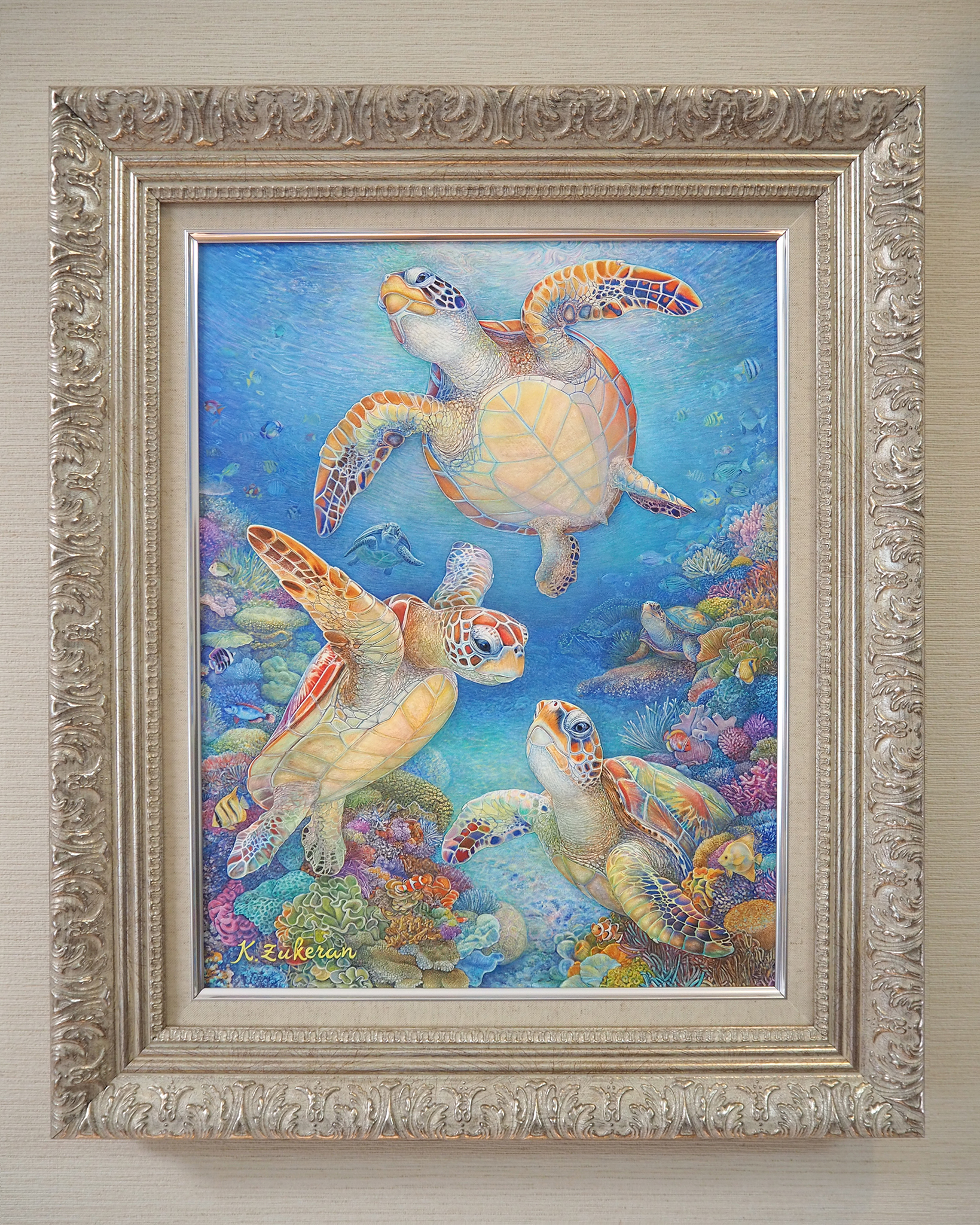 『 美ら亀三姉弟 』 フレスコ画 / 画寸:41.0×31.8cm (F6号) ・ 額寸:55.0×46.0cm