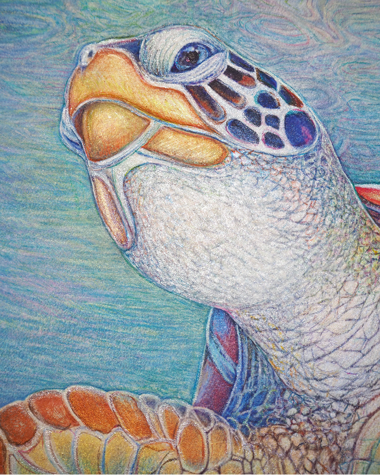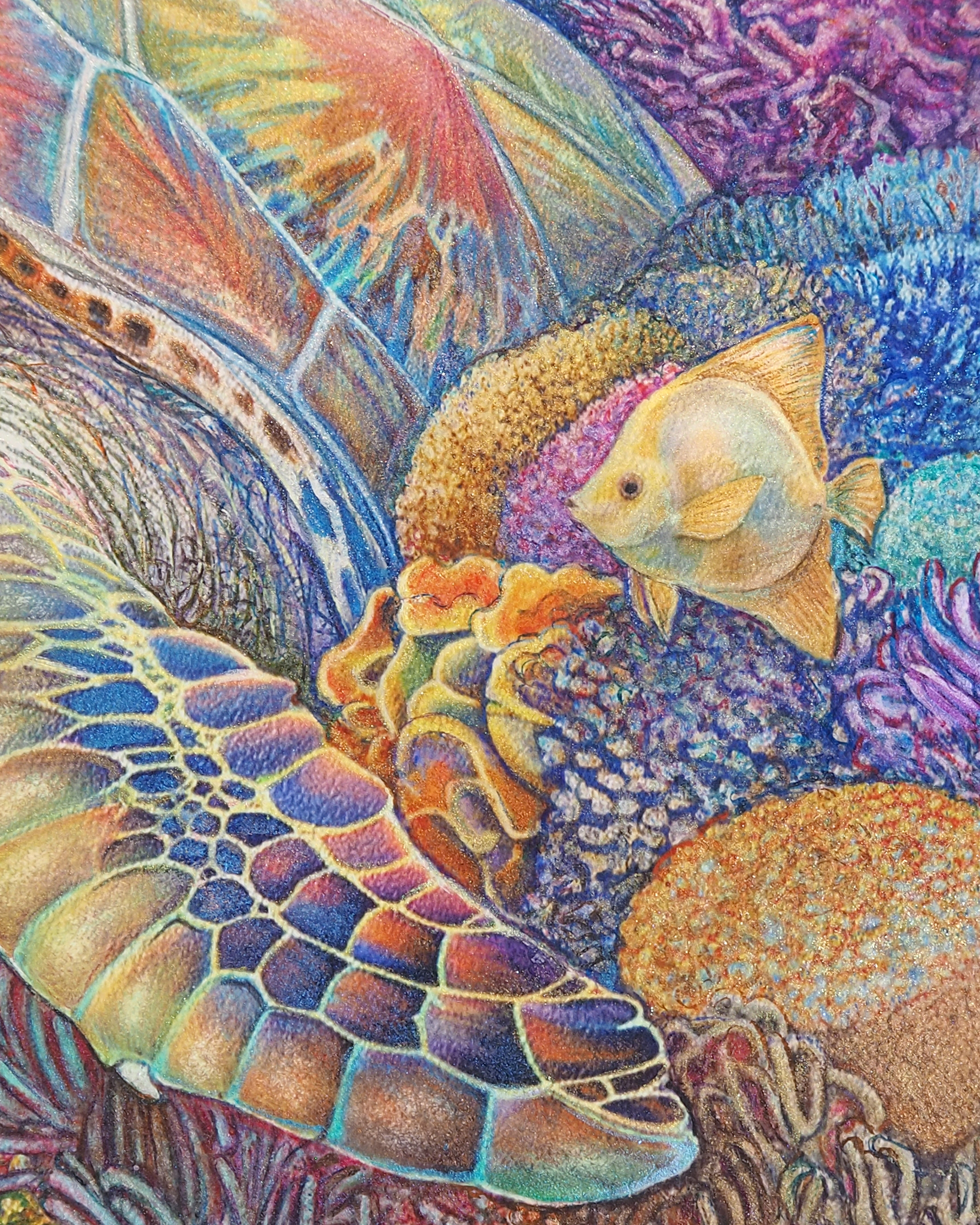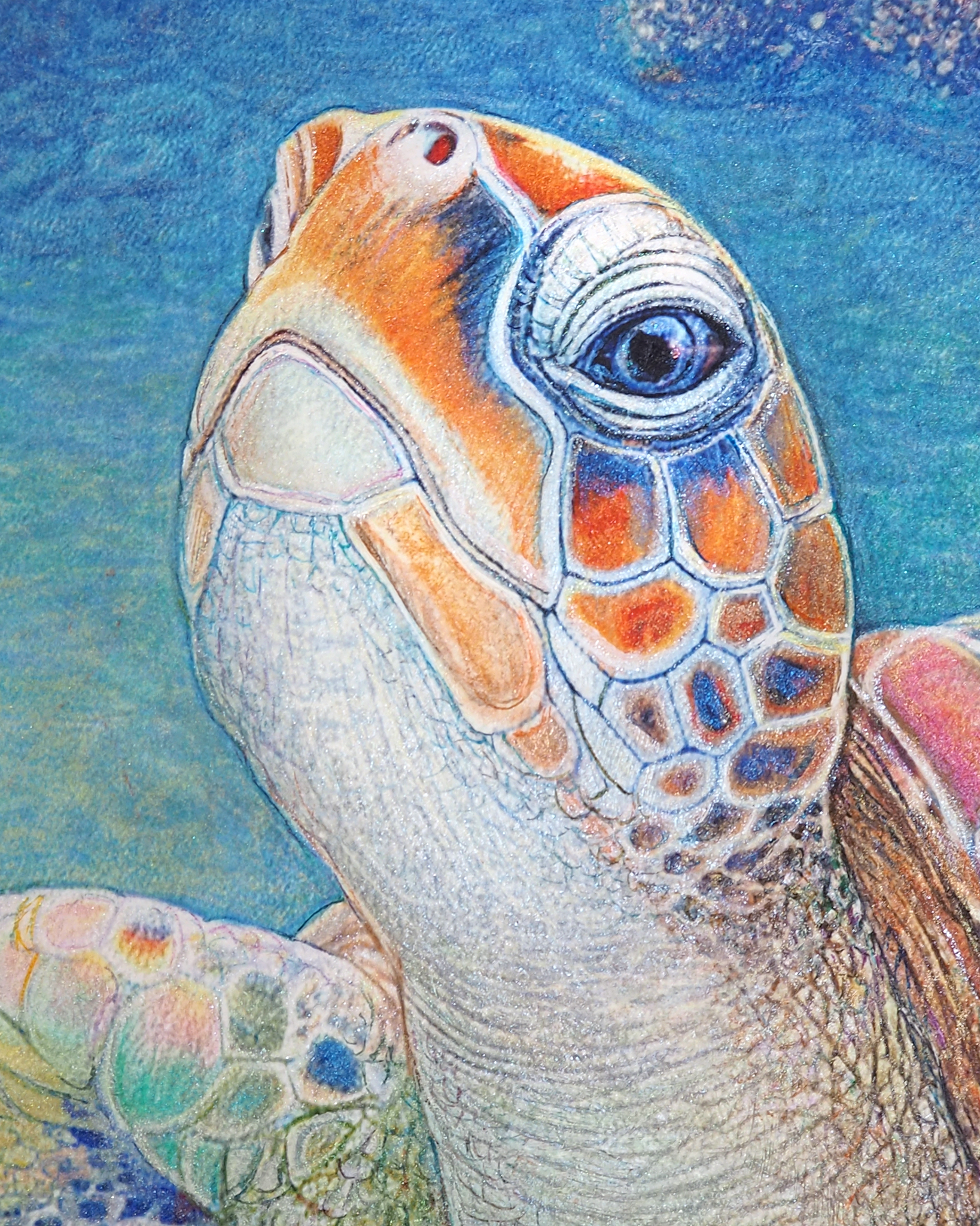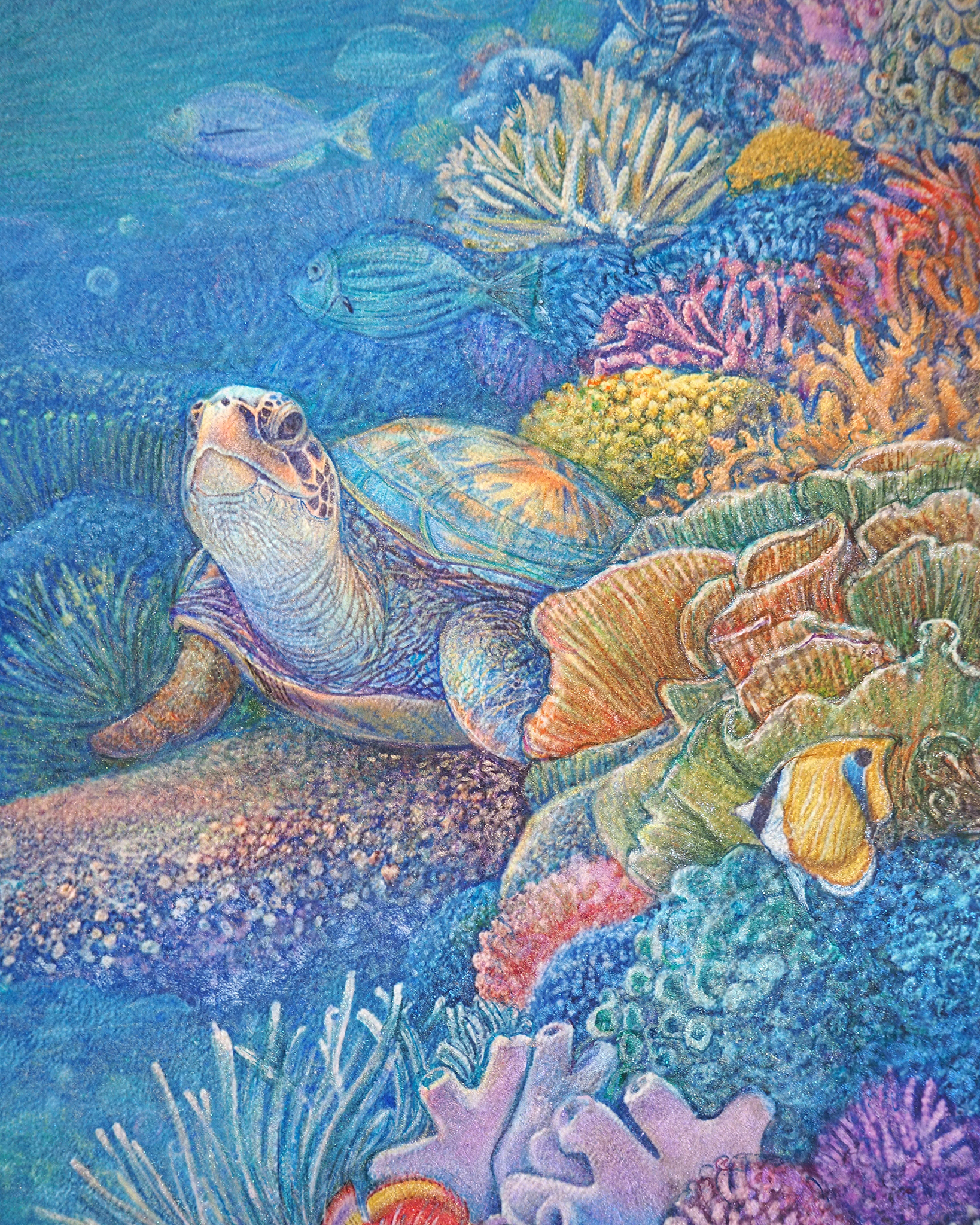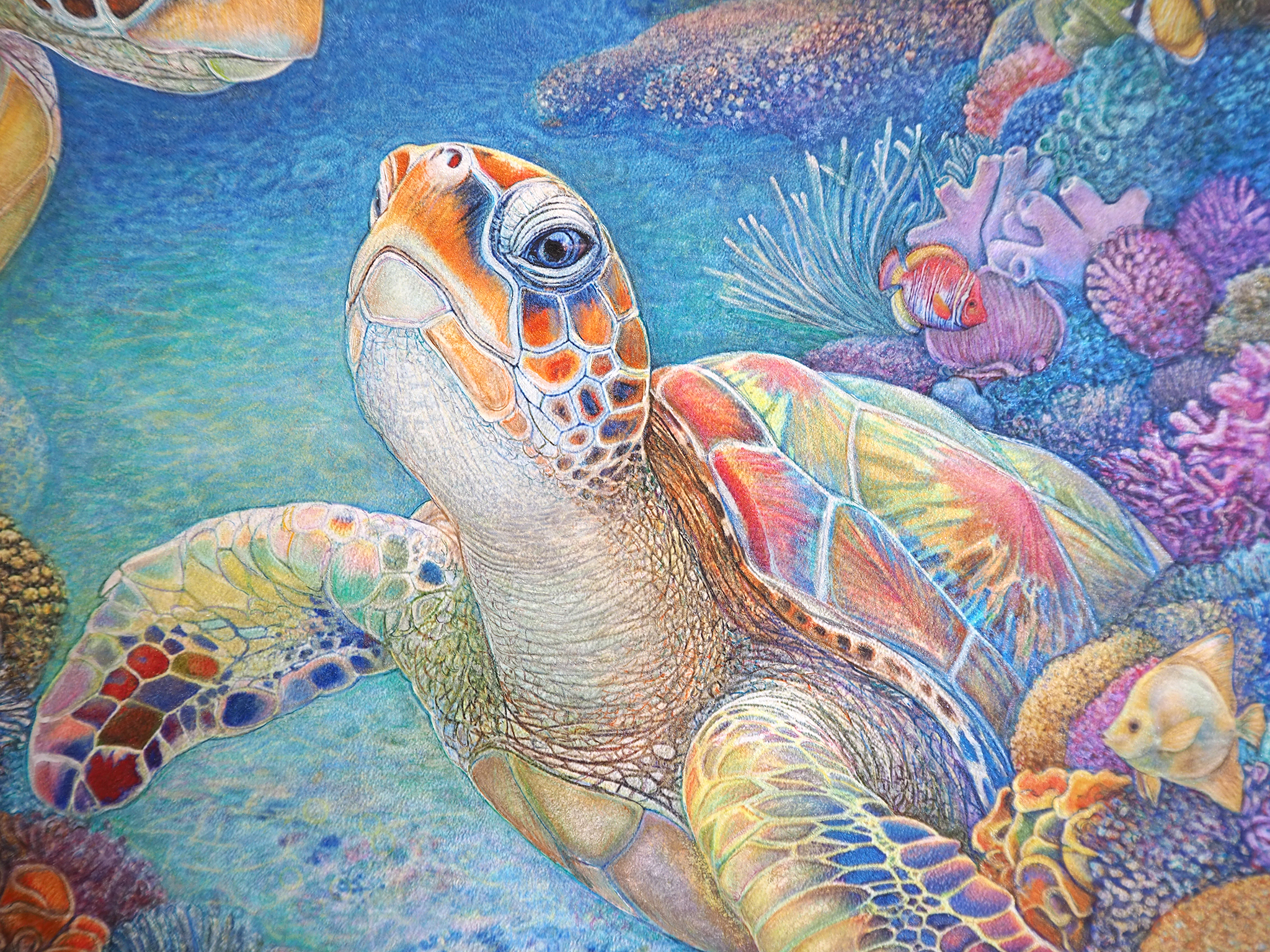 『 美ら亀三姉弟 』 フレスコ画 / 画寸:41.0×31.8cm (F6号) ・ 額寸:55.0×46.0cm