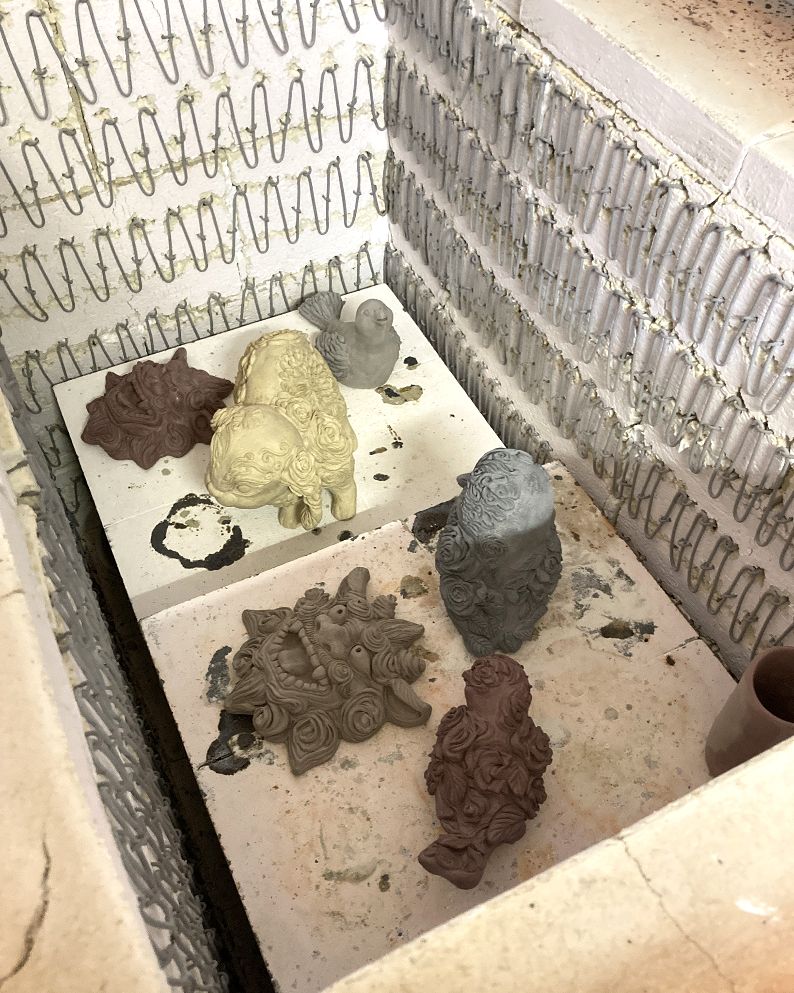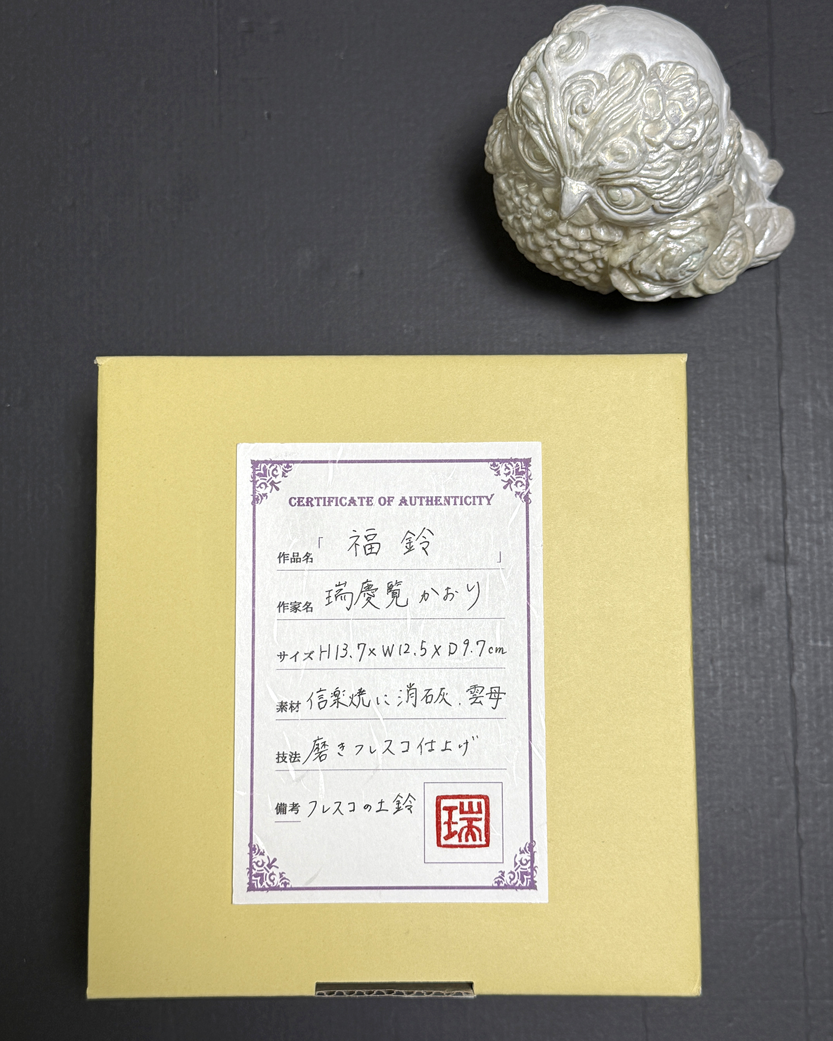 『 福鈴 (ふくりん)』 フレスコの土鈴(信楽焼に消石灰、雲母、磨きフレスコ仕上げ)/H13.7×W12.5×D9.7㎝
