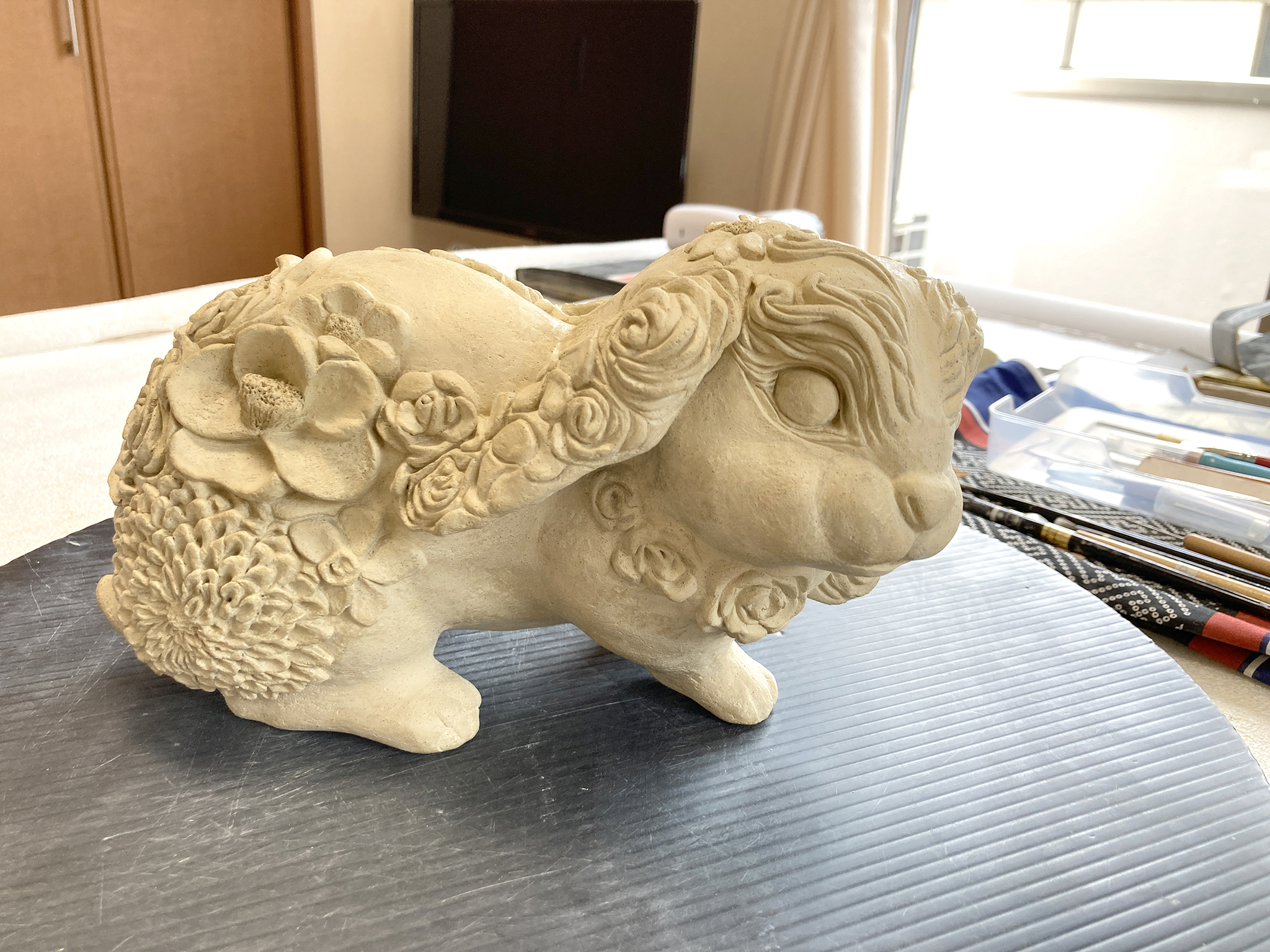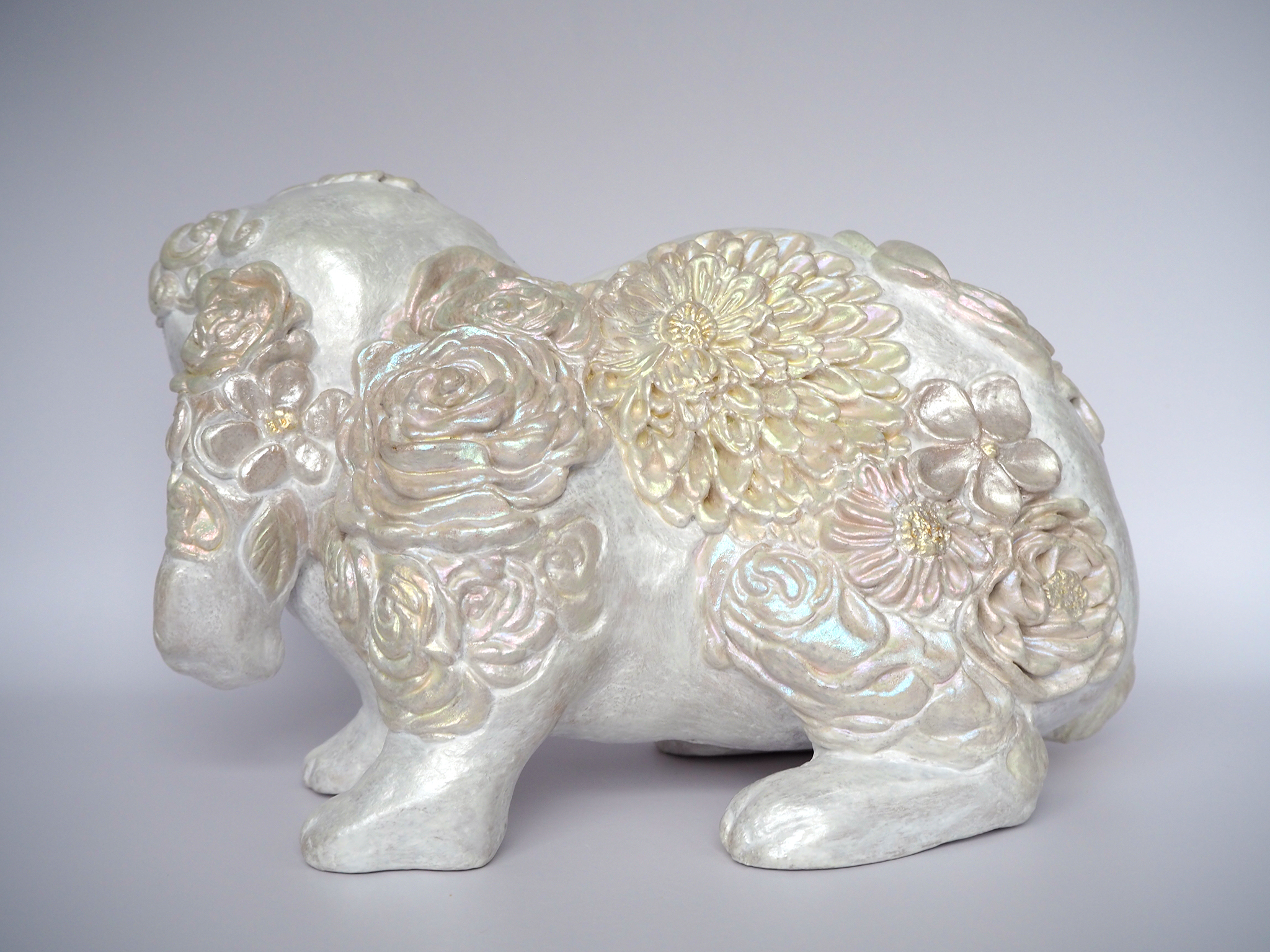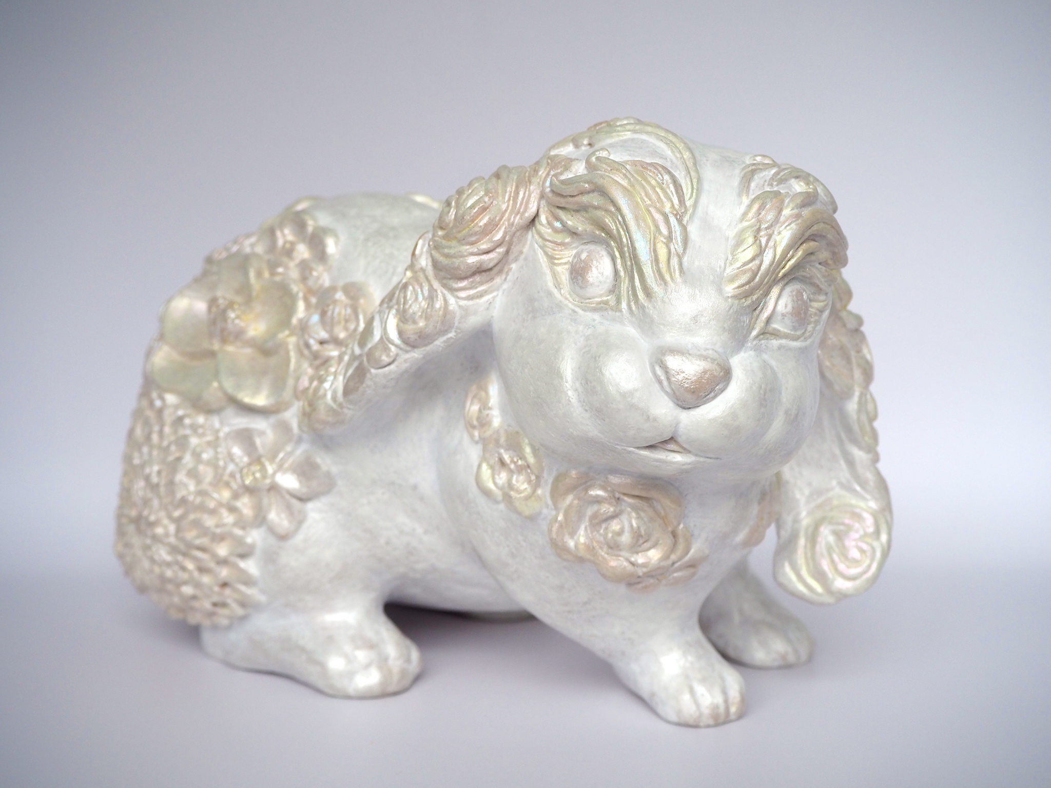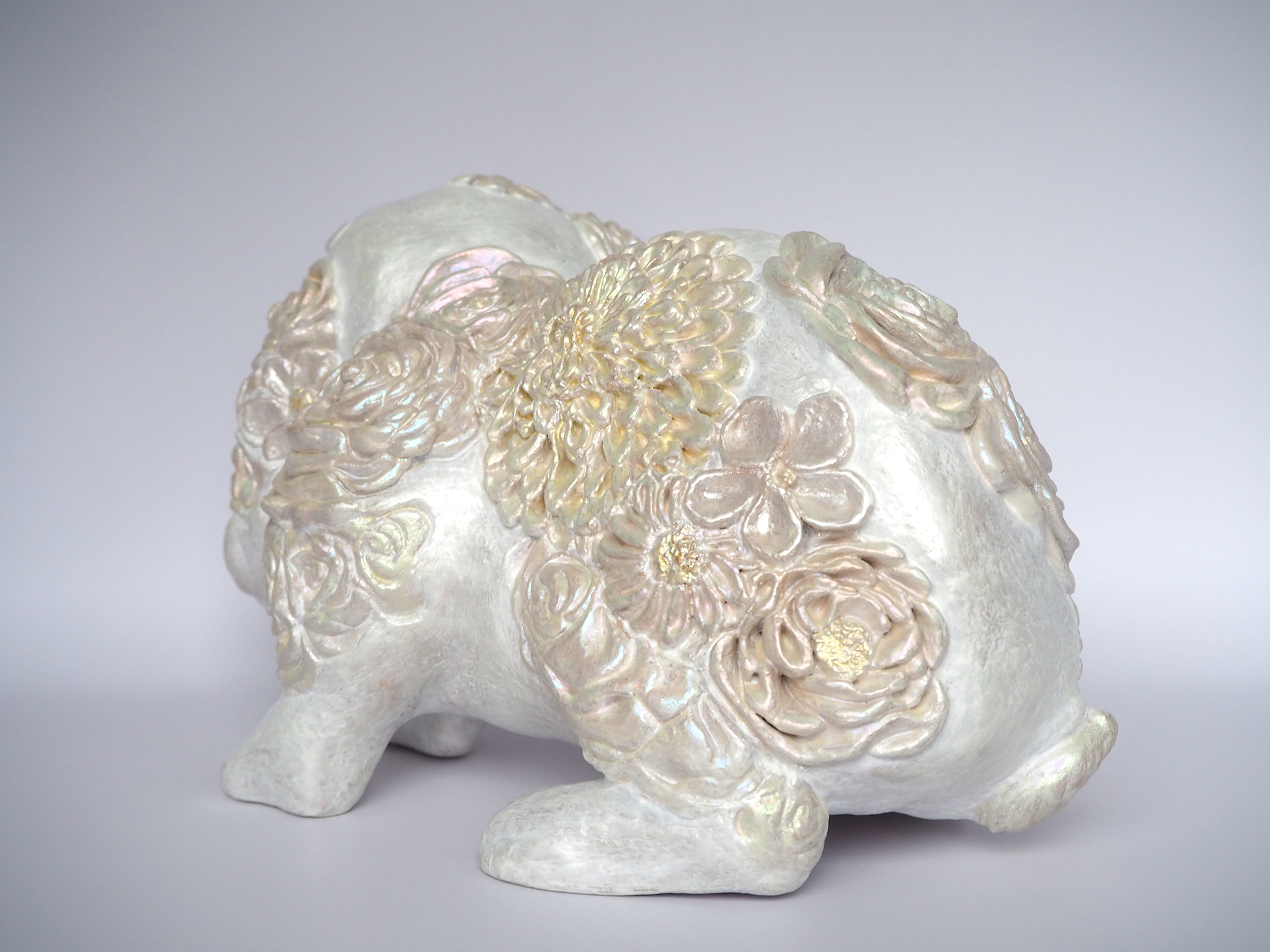 『 花兎 』 テラコッタに消石灰、雲母、磨きフレスコ仕上げ/W21.2×H13.0×D12.2㎝