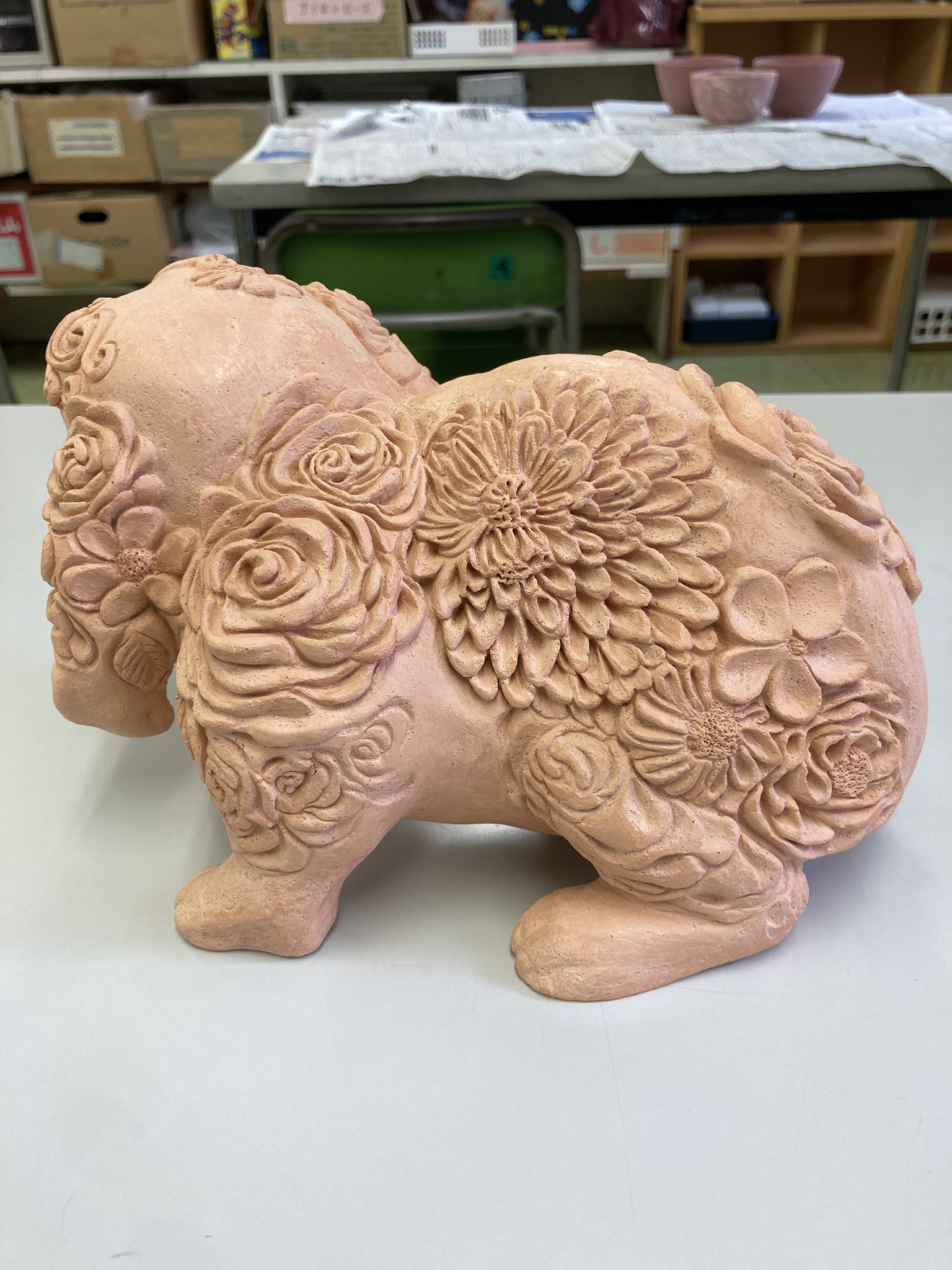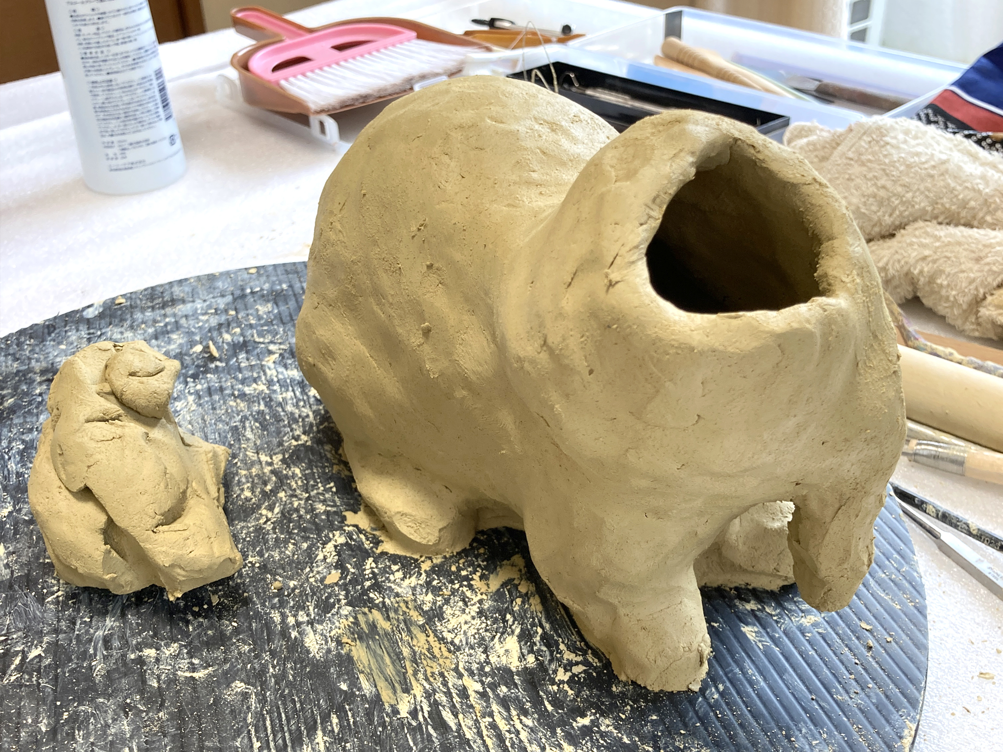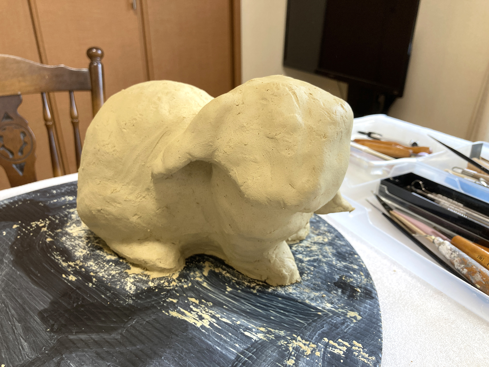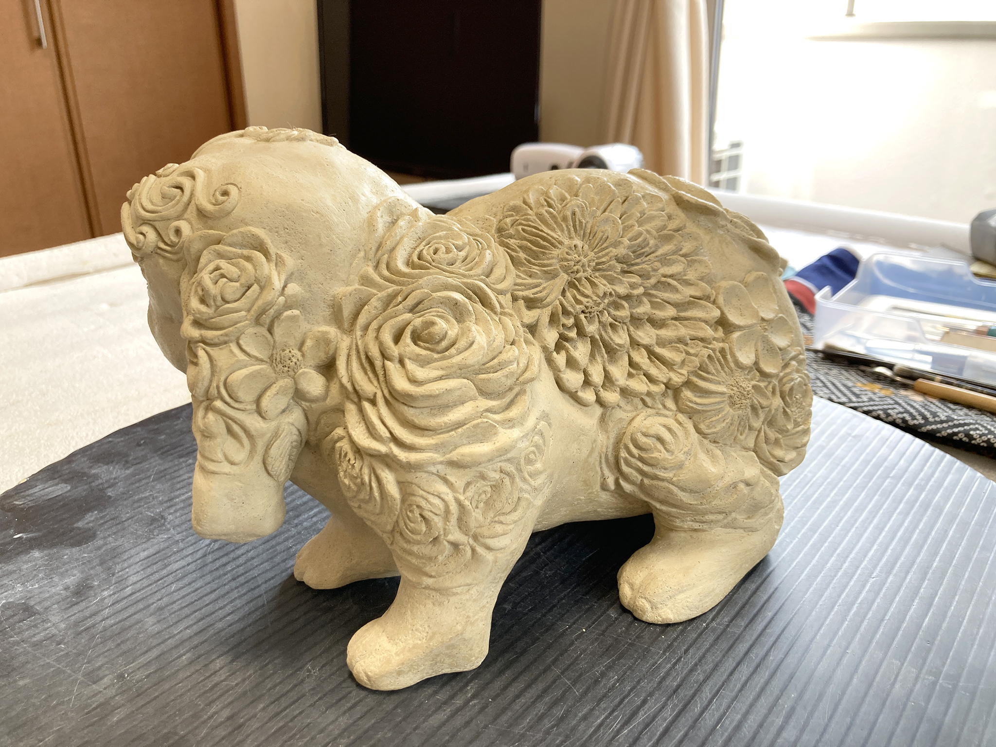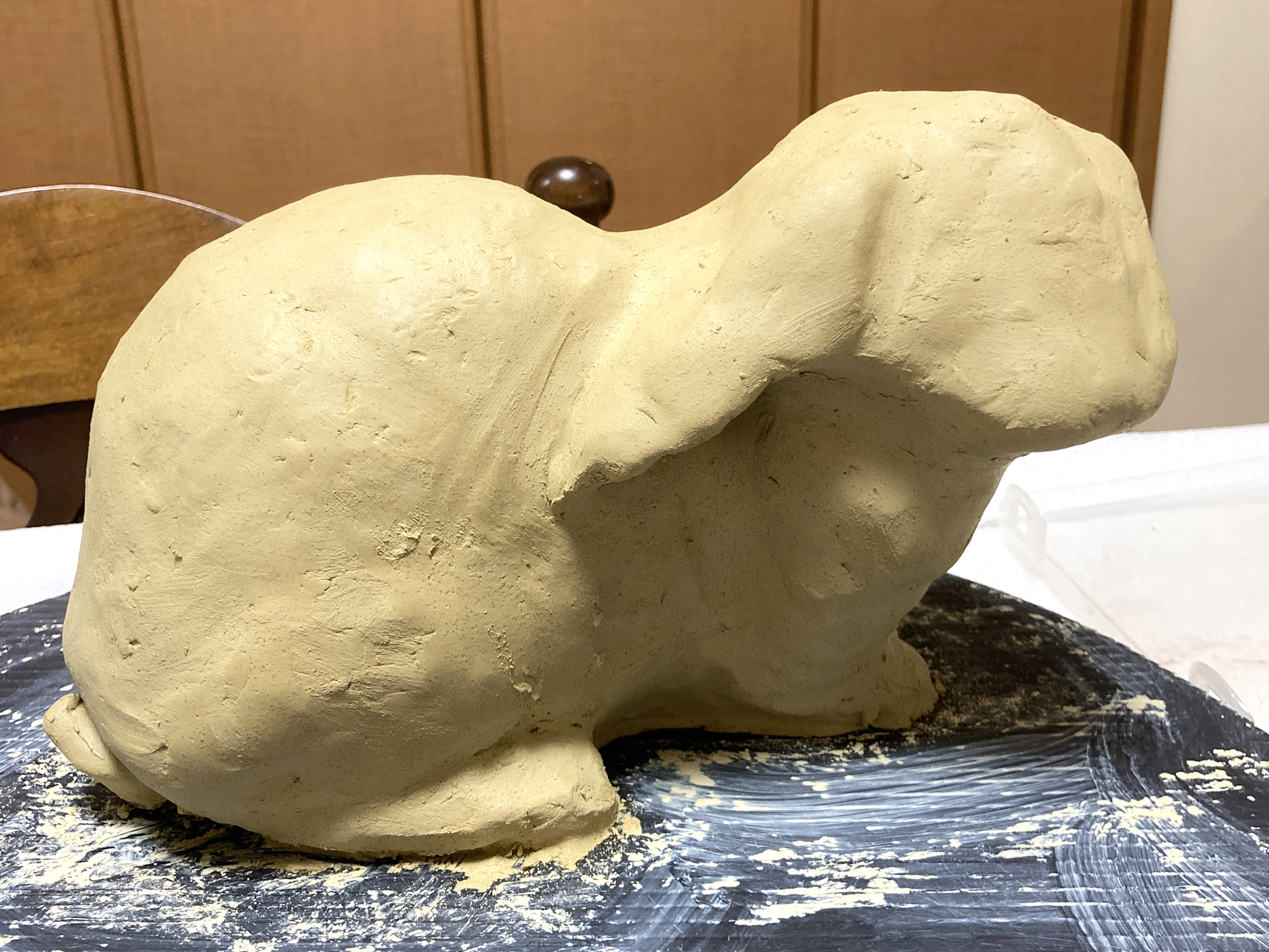 『 花兎 』 テラコッタに消石灰、雲母、磨きフレスコ仕上げ/W21.2×H13.0×D12.2㎝