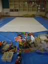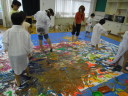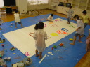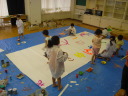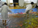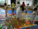 大きな紙にアクションペインティング!!